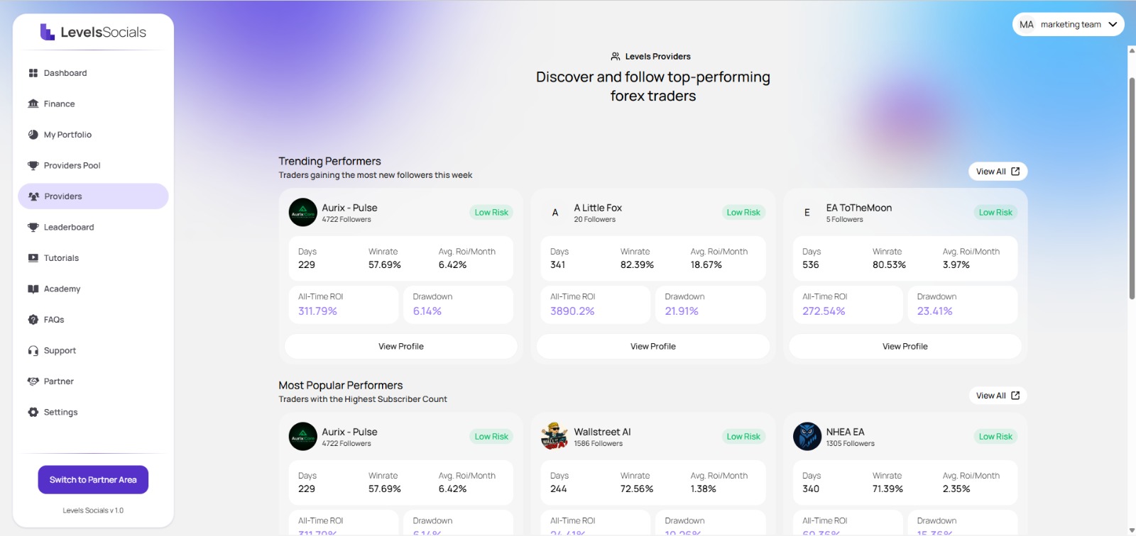 Browse our curated marketplace of professional traders. Each provider is verified, tracked, and ranked by real performance.